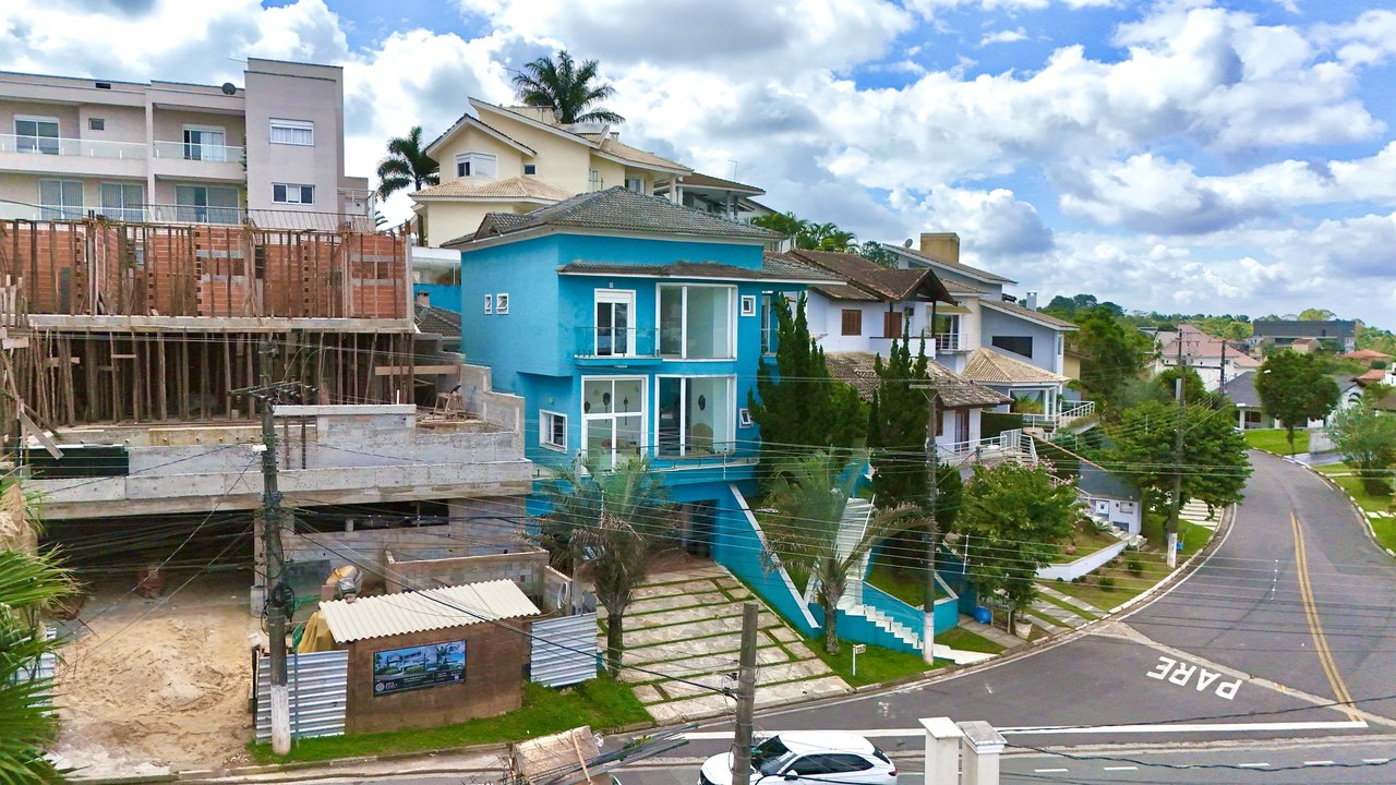 ⚜️Este sobrado moderno com ambientes integrados e uma imagem externa cativante e ousada conta com 4 grandes dormitórios com sacada, uma Sala de TV com um pé direito imponente e uma vista extraordinária da cidade de Arujá, Cozinha planejada, Escritório, Área de lazer, Sótão com diversas mesas de jogos e equipamentos de academia e uma garagem com 3 vagas cobertas!